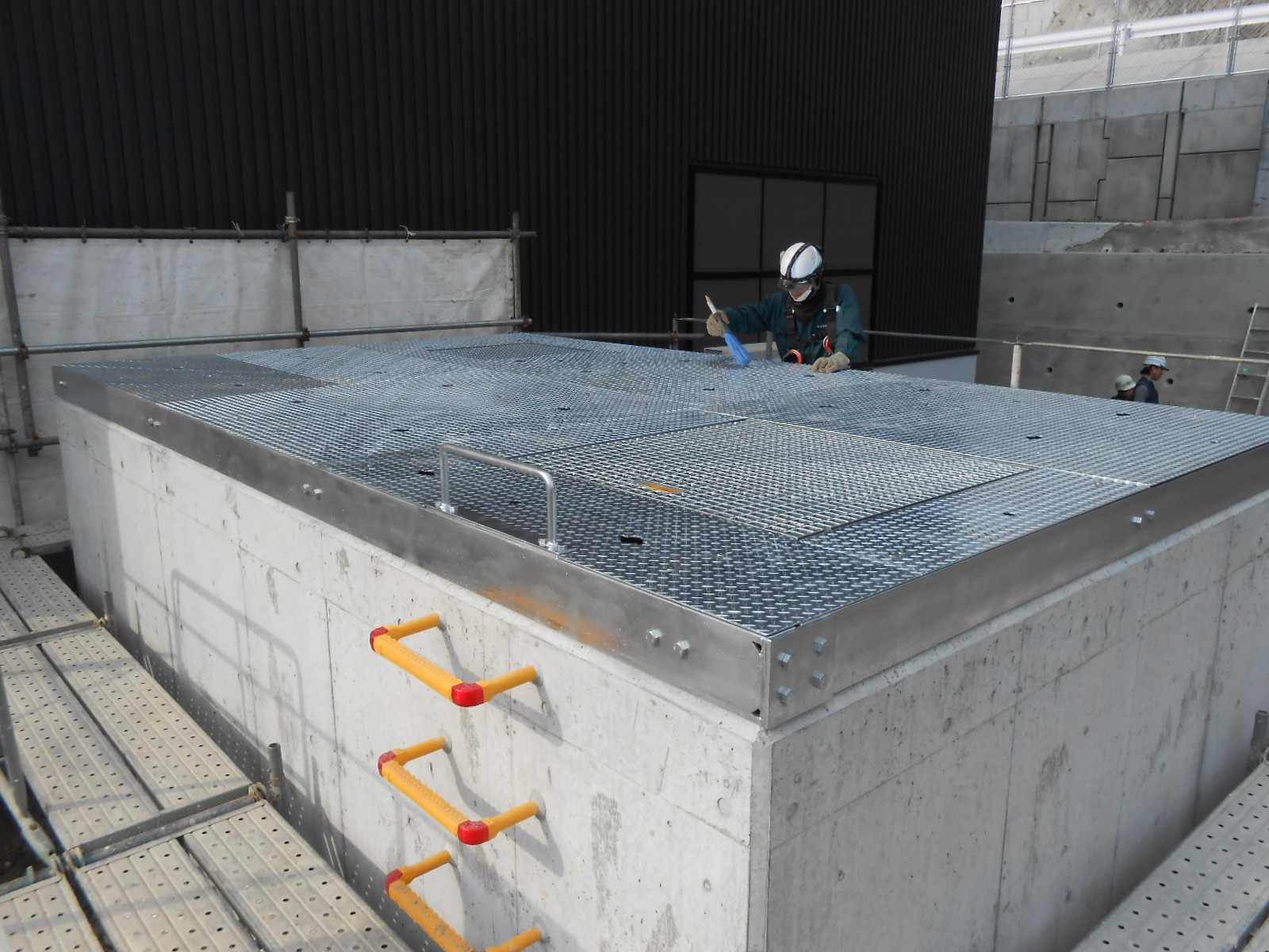 余水路減勢槽上部蓋設置工事②(溶融亜鉛メッキ処理)